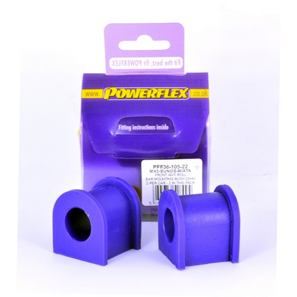Front Anti Roll Bar Mounting Bush 22mm PACK COMPLETO PARA EL VEHICULO DE 2 Unidades Numero en el diagrama: 4 Marca: MAZDA Modelo: Mk2 NB (1998-2005) Powerflex produce casquillos y silent-blocks de poliuretano diseñados para incrementar la estabilidad en todas las unionenes articuladas, ayudando considerablemente a estabilizar la geometría de la suspensión durante las curvas, en frenadas y en aceleraciones.