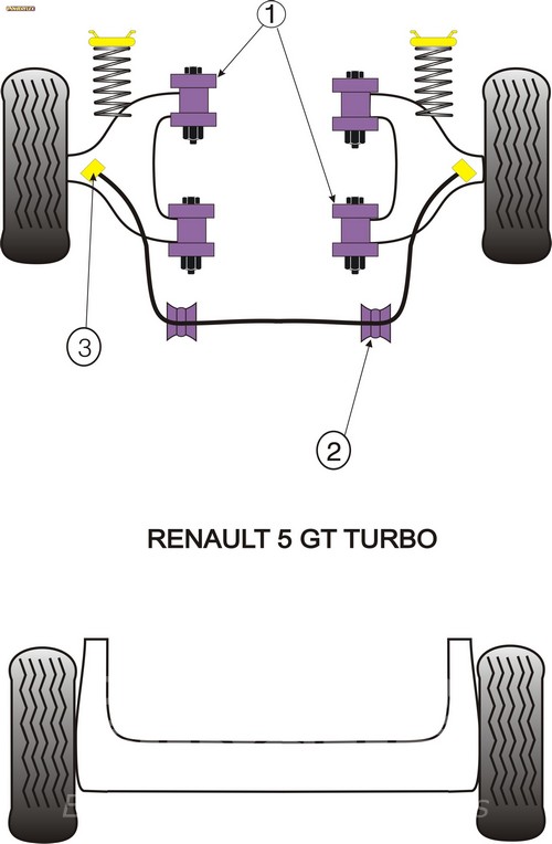 Front Anti Roll Bar Outer Mount PACK COMPLETO PARA EL VEHICULO DE 2 Unidades Numero en el diagrama: 3 Marca: RENAULT Modelo: 5 GT Turbo Powerflex produce casquillos y silent-blocks de poliuretano diseñados para incrementar la estabilidad en todas las unionenes articuladas, ayudando considerablemente a estabilizar la geometría de la suspensión durante las curvas, en frenadas y en aceleraciones.