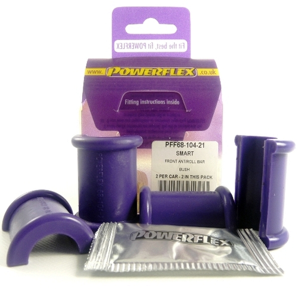 Front Silentblock barra estabilizadora 21mm PACK COMPLETO PARA EL VEHICULO DE 2 Unidades Numero en el diagrama: 4 Marca: SMART Modelo: ForTwo, City-Coupe and Roadster inc Brabus (1998-2007) Powerflex produce casquillos y silent-blocks de poliuretano diseñados para incrementar la estabilidad en todas las unionenes articuladas, ayudando considerablemente a estabilizar la geometría de la suspensión durante las curvas, en frenadas y en aceleraciones.