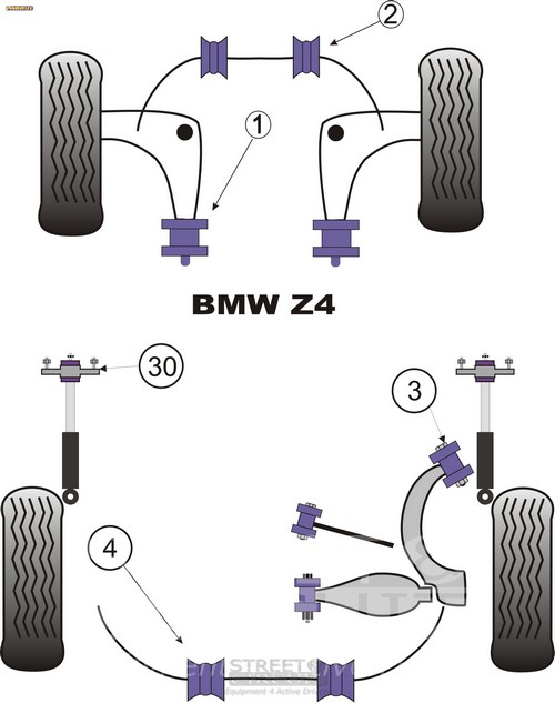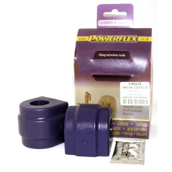 Front Silentblock barra estabilizadora 25mm PACK COMPLETO PARA EL VEHICULO DE 2 Unidades Numero en el diagrama: 3 Marca: BMW Modelo: Z4 (E85 & E86) Powerflex produce casquillos y silent-blocks de poliuretano diseñados para incrementar la estabilidad en todas las unionenes articuladas, ayudando considerablemente a estabilizar la geometría de la suspensión durante las curvas, en frenadas y en aceleraciones.
