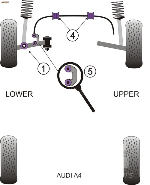 Front Lower Shock Mount PACK COMPLETO PARA EL VEHICULO DE 2 Unidades Numero en el diagrama: 1 Marca: SKODA Modelo: Superb (2002 - 2008) Powerflex produce casquillos y silent-blocks de poliuretano diseñados para incrementar la estabilidad en todas las unionenes articuladas, ayudando considerablemente a estabilizar la geometría de la suspensión durante las curvas, en frenadas y en aceleraciones.