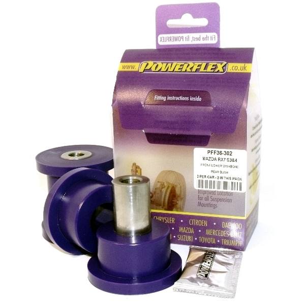 Front Lower Wishbone Rear Bush PACK COMPLETO PARA EL VEHICULO DE 2 Unidades Numero en el diagrama: 2 Marca: MAZDA Modelo: RX-7 Generation 3 & 4 (1992-2002) Powerflex produce casquillos y silent-blocks de poliuretano diseñados para incrementar la estabilidad en todas las unionenes articuladas, ayudando considerablemente a estabilizar la geometría de la suspensión durante las curvas, en frenadas y en aceleraciones.