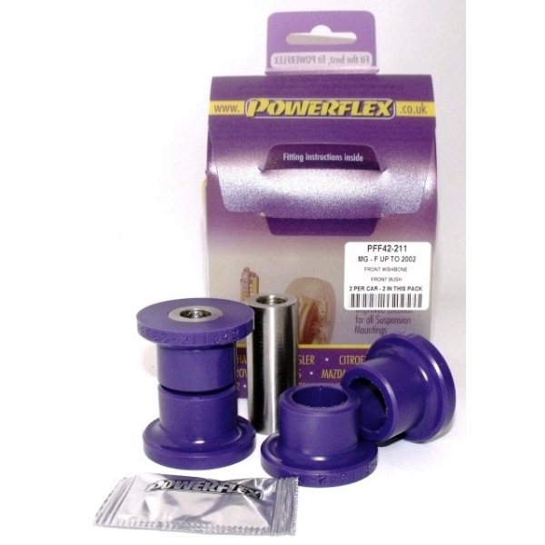 Front Wishbone Front Bush PACK COMPLETO PARA EL VEHICULO DE 2 Unidades Numero en el diagrama: 1 Marca: ROVER Modelo: MGF upto 2002 Powerflex produce casquillos y silent-blocks de poliuretano diseñados para incrementar la estabilidad en todas las unionenes articuladas, ayudando considerablemente a estabilizar la geometría de la suspensión durante las curvas, en frenadas y en aceleraciones.