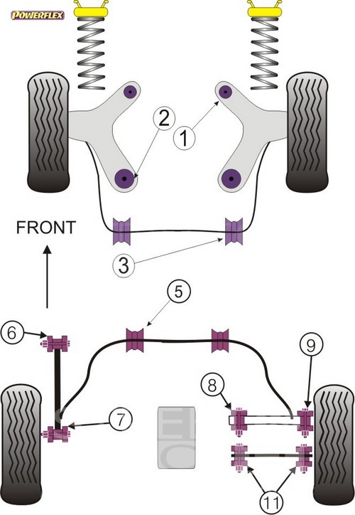 Los silent-blocks de Powerflex están fabricados con poliuretano. El poliuretano es un material plástico cuyas propiedades técnicas lo hacen muy adecuado para aquellos componentes sometidos a grandes esfuerzos. Otra gran ventaja es que no necesitan mantenimiento ni lubricación.