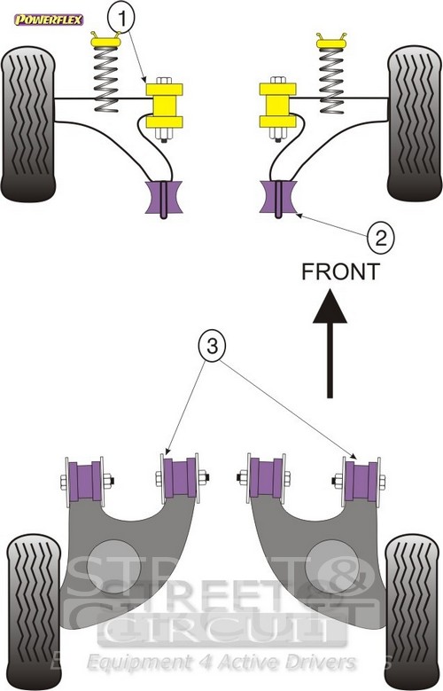 Powerflex produce casquillos y silent-blocks de poliuretano diseñados para incrementar la estabilidad en todas las unionenes articuladas, ayudando considerablemente a estabilizar la geometría de la suspensión durante las curvas, en frenadas y en aceleraciones. Los silent-blocks de Powerflex están fabricados con poliuretano. El poliuretano es un material plástico cuyas propiedades técnicas lo hacen muy adecuado para aquellos componentes sometidos a grandes esfuerzos. Otra gran ventaja es que no necesitan mantenimiento ni lubricación. Los silent-blocks originales están fabricados con un compuesto de caucho que se deteriora con el tiempo, ofreciendo cada vez menos control sobre la integridad geométrica de la suspensión. Debido a ello, los neumáticos también se desgastan con mayor rapidez y la conducción se convierte poco precisa, sobretodo al frenar o al acelerar. Gracias a este material y a la calidad de Powerflex, también ha sido posible reducir un problema común en las suspensiones como es el ruido.