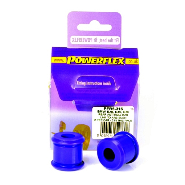Rear Anti Roll Bar Link To Silentblock barra estabilizadora PACK COMPLETO PARA EL VEHICULO DE 2 Unidades Numero en el diagrama: 16 Marca: BMW Modelo: E28 5 Series (1982 - 1988), E24 6 Series (1982 - 1989) Powerflex produce casquillos y silent-blocks de poliuretano diseñados para incrementar la estabilidad en todas las unionenes articuladas, ayudando considerablemente a estabilizar la geometría de la suspensión durante las curvas, en frenadas y en aceleraciones.
