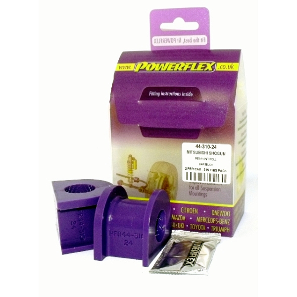 Rear Anti Roll Bar Mounting 24mm PACK COMPLETO PARA EL VEHICULO DE 2 Unidades Numero en el diagrama: 1 Marca: MITSUBISHI Modelo: Shogun 2000-2006 (V7* Models) Powerflex produce casquillos y silent-blocks de poliuretano diseñados para incrementar la estabilidad en todas las unionenes articuladas, ayudando considerablemente a estabilizar la geometría de la suspensión durante las curvas, en frenadas y en aceleraciones.