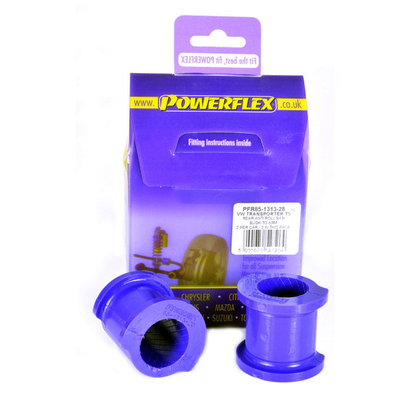 Rear Silentblock barra estabilizadora to Arm 28mm PACK COMPLETO PARA EL VEHICULO DE 2 Unidades Numero en el diagrama: 13 Marca: VOLKSWAGEN Modelo: T5 Transporter (2003 -) Powerflex produce casquillos y silent-blocks de poliuretano diseñados para incrementar la estabilidad en todas las unionenes articuladas, ayudando considerablemente a estabilizar la geometría de la suspensión durante las curvas, en frenadas y en aceleraciones.