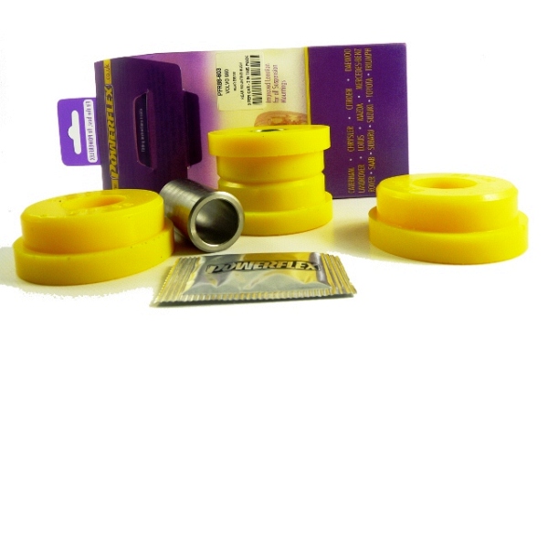 Powerflex produce casquillos y silent-blocks de poliuretano diseñados para incrementar la estabilidad en todas las unionenes articuladas, ayudando considerablemente a estabilizar la geometría de la suspensión durante las curvas, en frenadas y en aceleraciones. Los silent-blocks de Powerflex están fabricados con poliuretano. El poliuretano es un material plástico cuyas propiedades técnicas lo hacen muy adecuado para aquellos componentes sometidos a grandes esfuerzos. Otra gran ventaja es que no necesitan mantenimiento ni lubricación. Los silent-blocks originales están fabricados con un compuesto de caucho que se deteriora con el tiempo, ofreciendo cada vez menos control sobre la integridad geométrica de la suspensión. Debido a ello, los neumáticos también se desgastan con mayor rapidez y la conducción se convierte poco precisa, sobretodo al frenar o al acelerar. Gracias a este material y a la calidad de Powerflex, también ha sido posible reducir un problema común en las suspensiones como es el ruido.