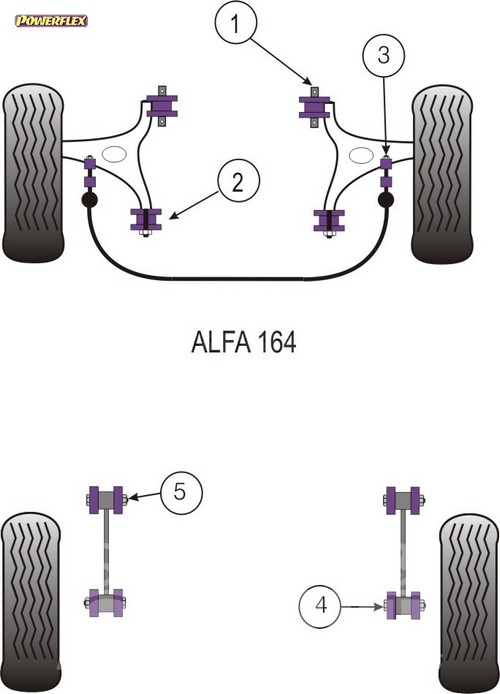 Rear Tie Bar To Chassis Bush PACK COMPLETO PARA EL VEHICULO DE 2 Unidades Numero en el diagrama: 5 Marca: ALFA ROMEO Modelo: 164 V6 & Twin Spark (1987 -1998) Powerflex produce casquillos y silent-blocks de poliuretano diseñados para incrementar la estabilidad en todas las unionenes articuladas, ayudando considerablemente a estabilizar la geometría de la suspensión durante las curvas, en frenadas y en aceleraciones.
