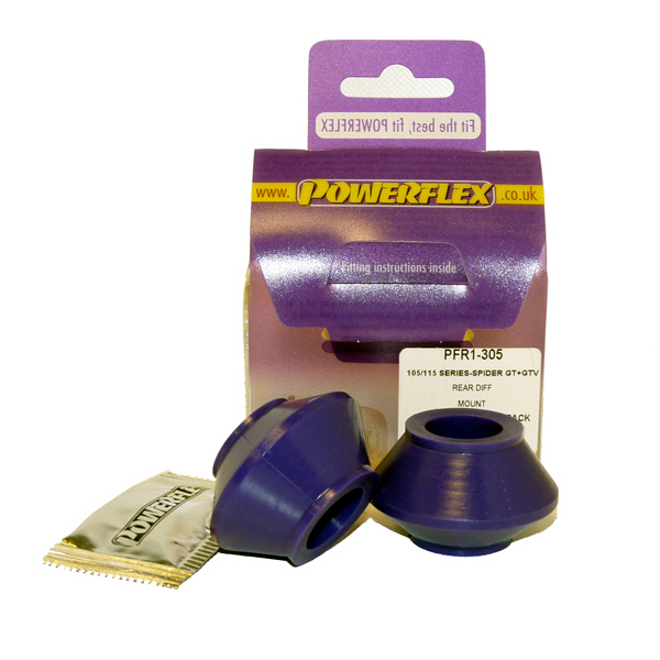 Rear Diff Mounting Bush PACK COMPLETO PARA EL VEHICULO DE 1 Unidades Numero en el diagrama: 6 Marca: ALFA ROMEO Modelo: P6 Spider, GTV all series (1967-1994) Powerflex produce casquillos y silent-blocks de poliuretano diseñados para incrementar la estabilidad en todas las unionenes articuladas, ayudando considerablemente a estabilizar la geometría de la suspensión durante las curvas, en frenadas y en aceleraciones.