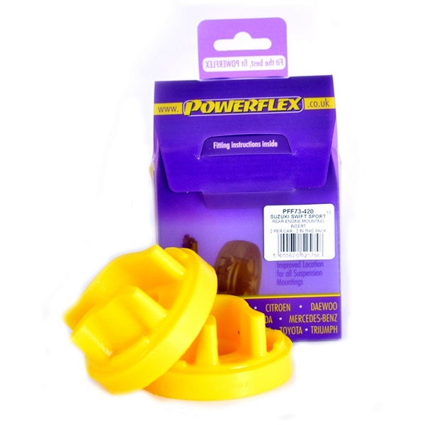 Rear Engine Mounting Insert PACK COMPLETO PARA EL VEHICULO DE 2 Unidades Numero en el diagrama: 2 Marca: SUZUKI Modelo: Swift - Sport (2010 on) Powerflex produce casquillos y silent-blocks de poliuretano diseñados para incrementar la estabilidad en todas las unionenes articuladas, ayudando considerablemente a estabilizar la geometría de la suspensión durante las curvas, en frenadas y en aceleraciones.