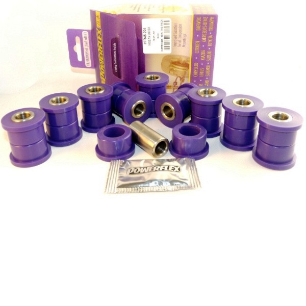 Los silent-blocks de Powerflex están fabricados con poliuretano. El poliuretano es un material plástico cuyas propiedades técnicas lo hacen muy adecuado para aquellos componentes sometidos a grandes esfuerzos. Otra gran ventaja es que no necesitan mantenimiento ni lubricación.