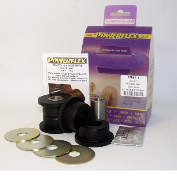 Rear Lower Spring Mount Outer PACK COMPLETO PARA EL VEHICULO DE 2 Unidades Numero en el diagrama: 7 Marca: ALFA ROMEO Modelo: GTV & Spider 2.0 & V6, 916 (1995-2005) Powerflex produce casquillos y silent-blocks de poliuretano diseñados para incrementar la estabilidad en todas las unionenes articuladas, ayudando considerablemente a estabilizar la geometría de la suspensión durante las curvas, en frenadas y en aceleraciones.