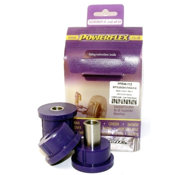 Rear Lower Track Control Arm Outer Bush PACK COMPLETO PARA EL VEHICULO DE 2 Unidades Numero en el diagrama: 9 Marca: MITSUBISHI Modelo: Lancer Evolution 8-9 (inc 260) Powerflex produce casquillos y silent-blocks de poliuretano diseñados para incrementar la estabilidad en todas las unionenes articuladas, ayudando considerablemente a estabilizar la geometría de la suspensión durante las curvas, en frenadas y en aceleraciones.