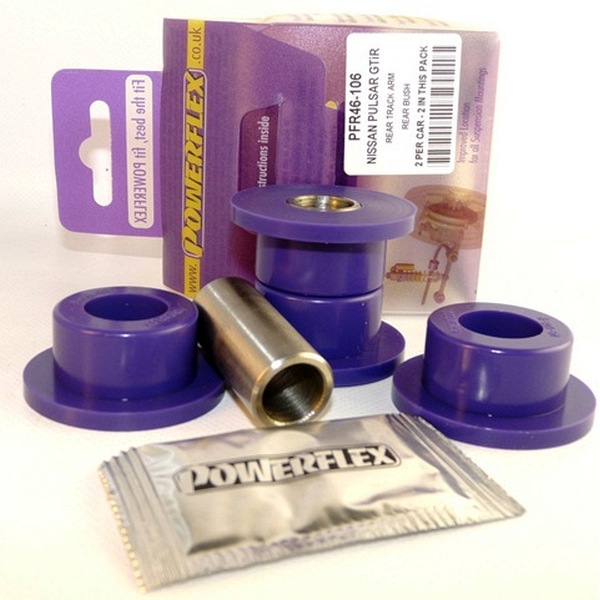 Rear Track Arm Rear Bush Kit PACK COMPLETO PARA EL VEHICULO DE 2 Unidades Numero en el diagrama: 6 Marca: NISSAN Modelo: Sunny/Pulsar GTiR Powerflex produce casquillos y silent-blocks de poliuretano diseñados para incrementar la estabilidad en todas las unionenes articuladas, ayudando considerablemente a estabilizar la geometría de la suspensión durante las curvas, en frenadas y en aceleraciones.