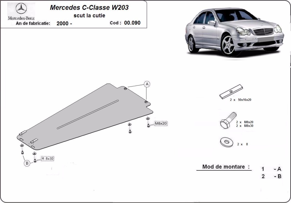 Protector de Acero para caja de cambios automática para Mercedes Clase C W203 Año: 2000 - 2007 Motor: Todas las motorizaciones Caja cambio: automático Grosor: 2mm Agujero para aceite: Sin hueco para el tapon de aceite. Protege: caja de cambios Descripcion: Protecciones de acero o aluminio para el motor y la caja de cambios.