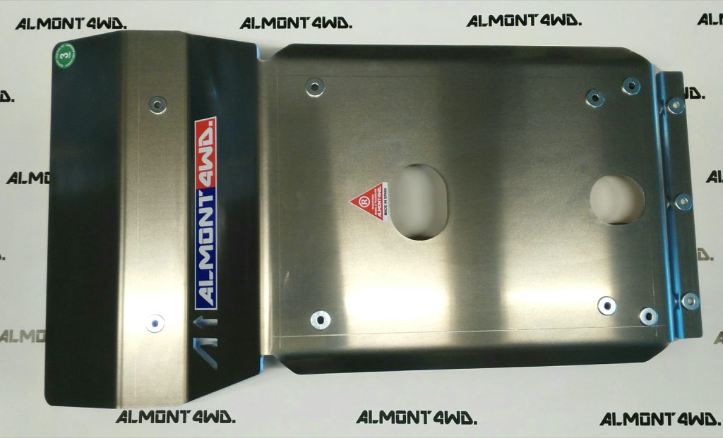 Las protecciones Almont4WD están diseñadas para proteger tu vehÃculo y los distintos componentes de cualquier peligro que puedas encontrar mientras conduces hacia el trabajo, casa y especialmente en la conducción offroad. Nuestras protecciones encajan en los orificios originales del chasis de tu vehÃculo para proteger tu motor, dirección, tanque de combustible, caja de cambios, caja transfer y escape. Los soportes están especialmente diseñados para absorber golpes y vibraciones. DURALUMINIO: Todo el material de aleación DURALUMINIO es homologado ALCOA ALLOY con ISO9001 y UNE HEAVY DUTT 8 de Dural AW5083 ALCOA 8mm. Uso intensivo, profesional o vehiculos pesados (APTO COMPETICION)