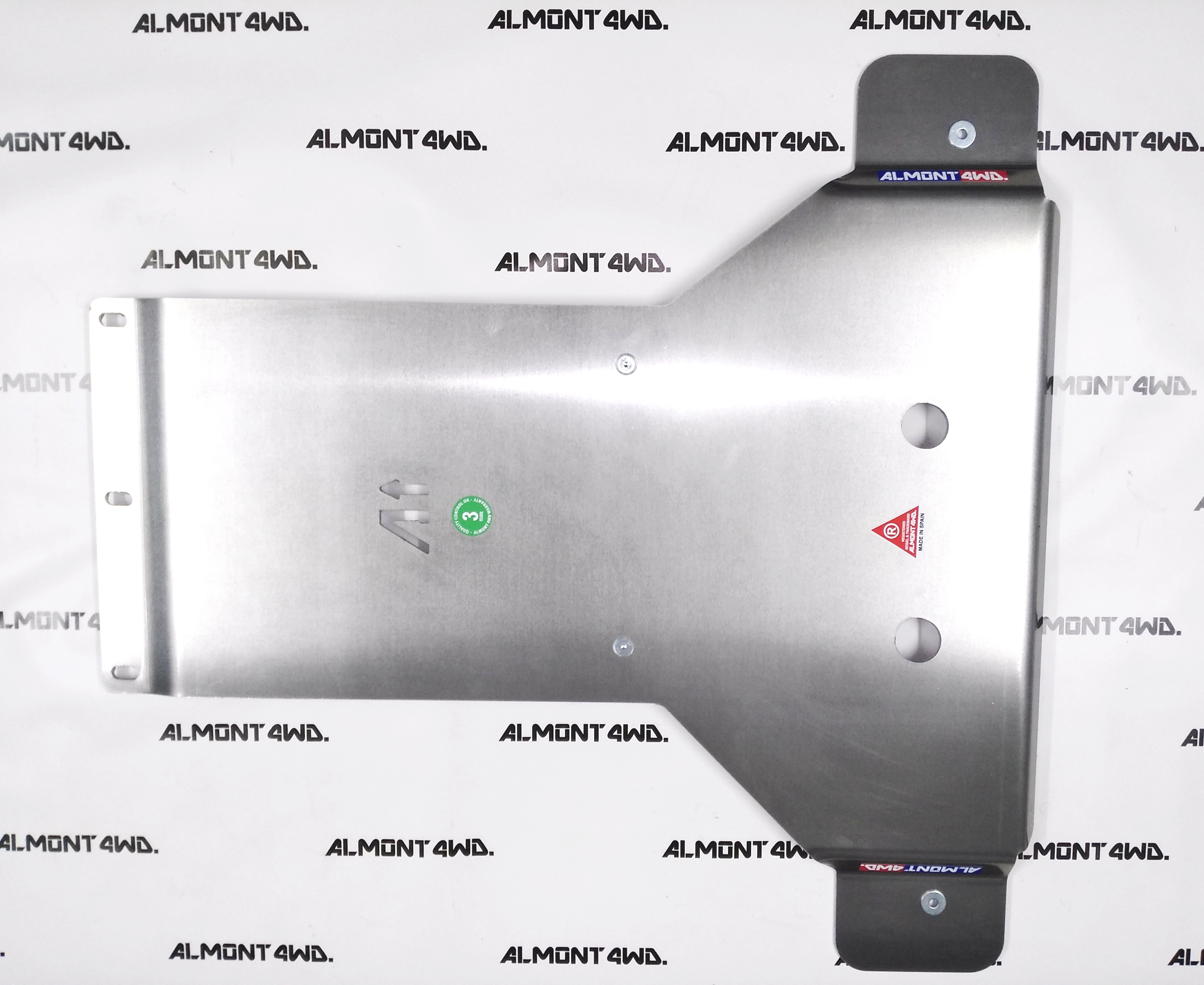 Las protecciones Almont4WD están diseñadas para proteger tu vehículo y los distintos componentes de cualquier peligro que puedas encontrar mientras conduces hacia el trabajo, casa y especialmente en la conducción offroad. Nuestras protecciones encajan en los orificios originales del chasis de tu vehículo para proteger tu motor, dirección, tanque de combustible, caja de cambios, caja transfer y escape. Los soportes están especialmente diseñados para absorber golpes y vibraciones. DURALUMINIO: Todo el material de aleación DURALUMINIO es homologado ALCOA ALLOY con ISO9001 y UNE HEAVY DUTT 8 de Dural AW5083 ALCOA 8mm. Uso intensivo, profesional o vehiculos pesados (APTO COMPETICION)