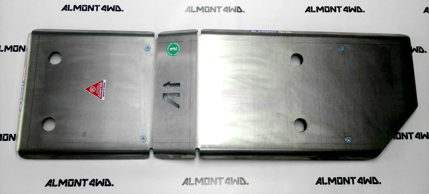 Las protecciones Almont4WD están diseñadas para proteger tu vehículo y los distintos componentes de cualquier peligro que puedas encontrar mientras conduces hacia el trabajo, casa y especialmente en la conducción offroad. Nuestras protecciones encajan en los orificios originales del chasis de tu vehículo para proteger tu motor, dirección, tanque de combustible, caja de cambios, caja transfer y escape. Los soportes están especialmente diseñados para absorber golpes y vibraciones. DURALUMINIO: Todo el material de aleación DURALUMINIO es homologado ALCOA ALLOY con ISO9001 y UNE
