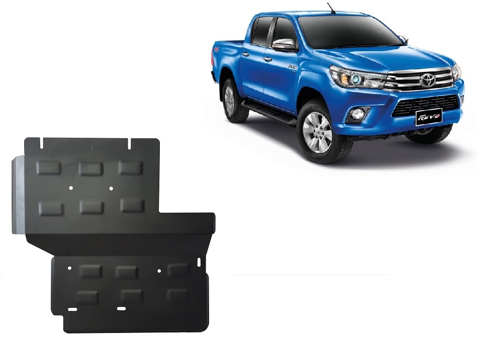 Protector de diferencial de Acero para Toyota Hilux Revo Año: 2016 - 2021 Motor: Todas las motorizaciones Caja cambio: Grosor: 3mm Agujero para aceite: Sin hueco para el tapon de aceite. Protege: Filtro de partículas, caja de transferencia Descripcion: Protecciones de acero o aluminio para el motor y la caja de cambios.