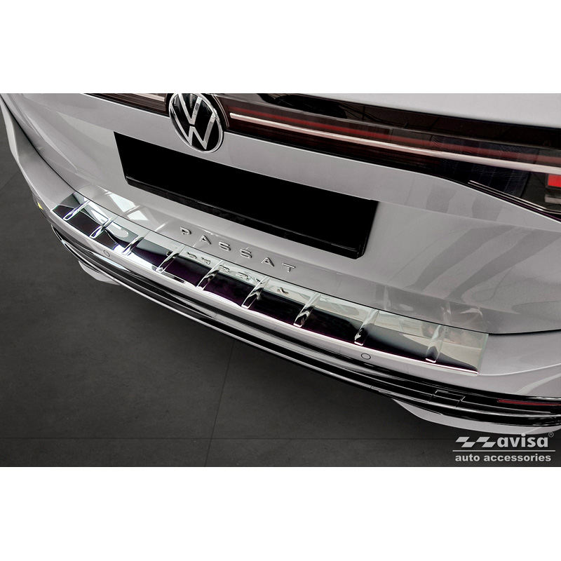 Protector de parachoques trasero de acero inoxidable cromado apto para Volkswagen Passat Variant (CJ5) 2023- 'Ribs' El tiempo de entrega del articulo puede ser de 10 dias dependiendo de la disponibilidad del articulo.