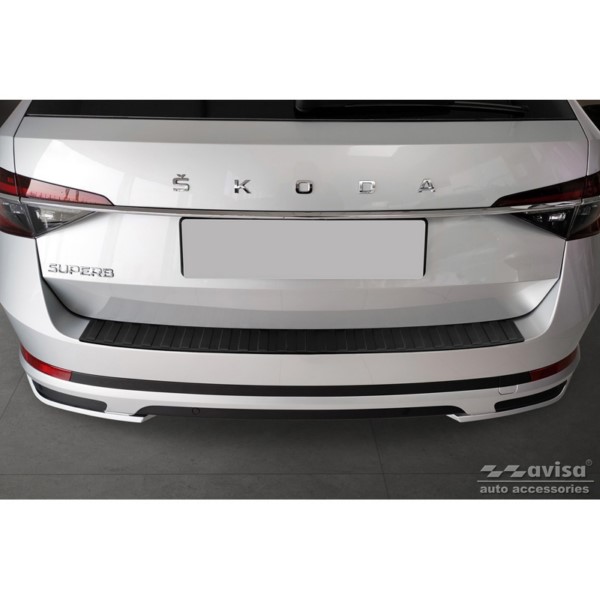 Protector de parachoques trasero de acero inoxidable negro mate adecuado para Skoda Superb III Combi 2015-2019 y Facelift 2019- incl. Scout 2019- 'Ribs' El tiempo de entrega del producto puede ser de 10-15 dias según la disponibilidad.