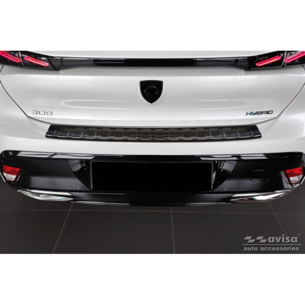 Protector de parachoques trasero de acero inoxidable negro para Peugeot 308 III HB 2021- 'Ribs' El tiempo de entrega del articulo puede ser de 9 dias dependiendo de la disponibilidad.