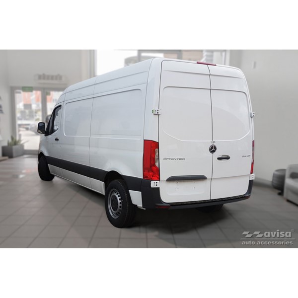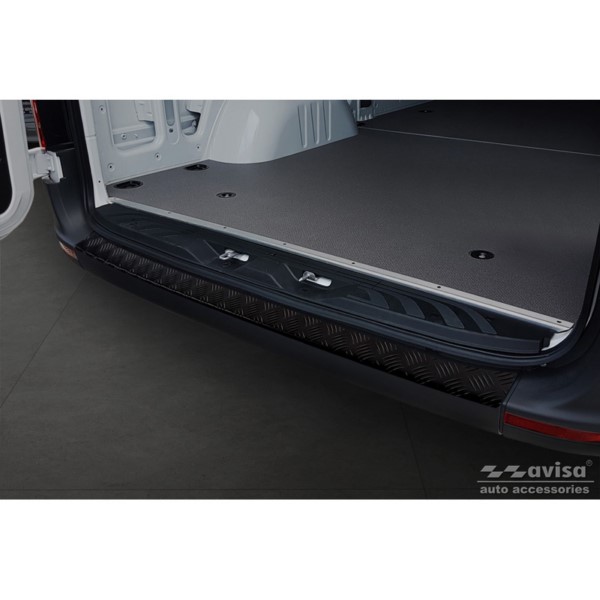 Protector de parachoques trasero de aluminio negro mate adecuado para Mercedes Sprinter III 2018- 'Riffled plate'. El tiempo de entrega del producto puede ser de 10-15 dias según la disponibilidad.