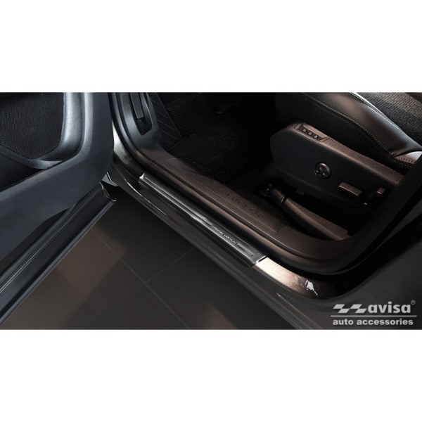 Protectores de umbral de puerta de acero inoxidable negro valido para Peugeot 3008 2016- 'Edición especial' - 4 piezas El tiempo de entrega del producto puede ser de 10 dias según disponibilidad.