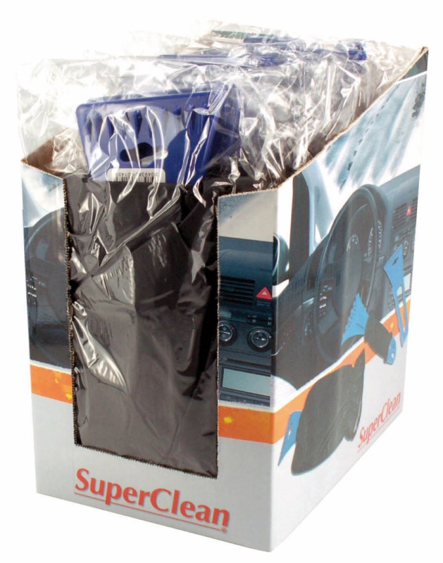 BOX 12 RASQUETAS CON GUANTES CEPILLO TEJIDOS SUPER CLEAN