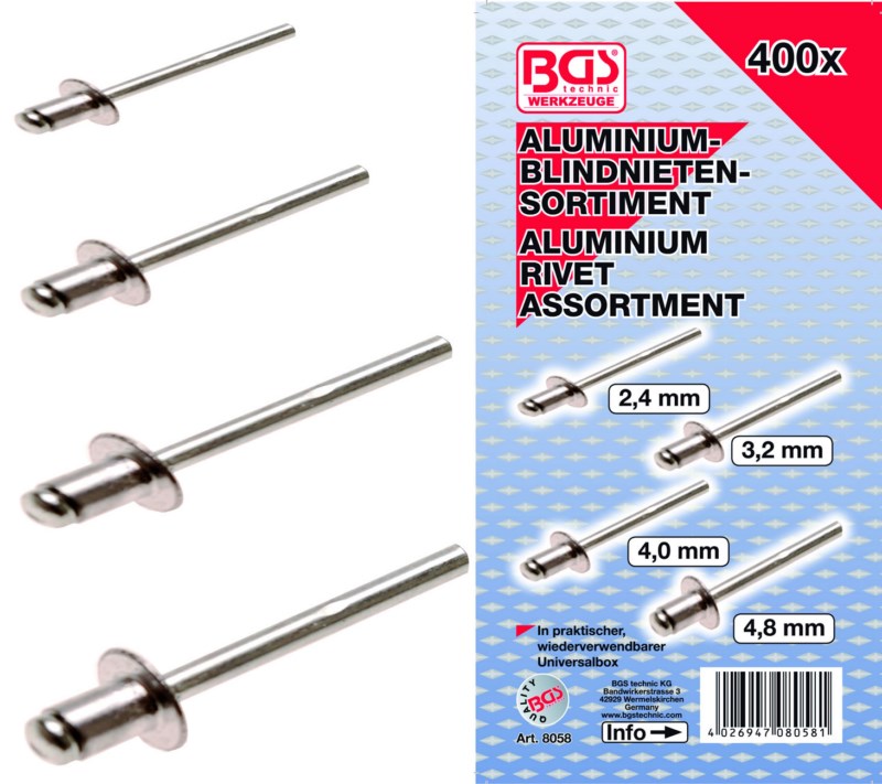 Remaches de aluminio - 400 piezas