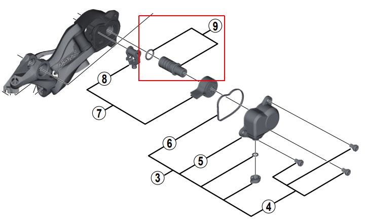 Shimano, Rear derailleur accessories, spareparts, XTR, RD-M9000, shift axle unti, includes seal, corresponds to Nr. 9 on picture