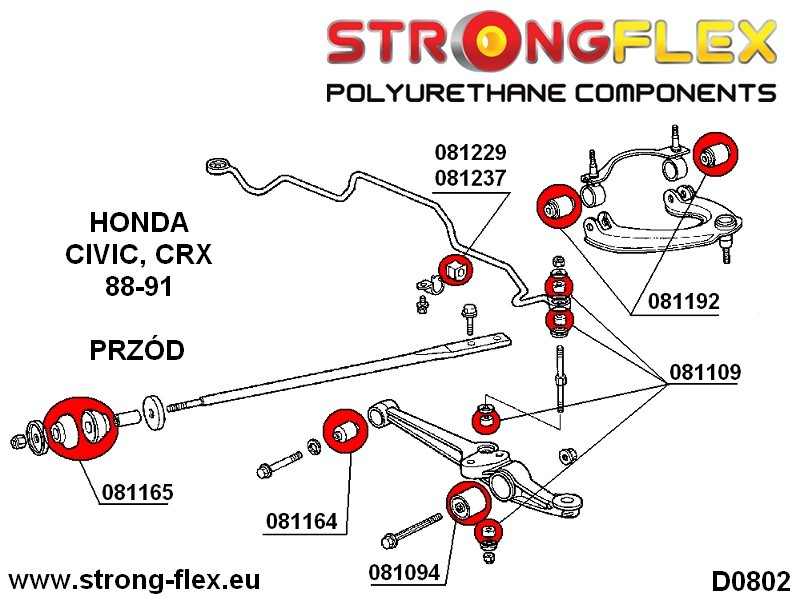 Color ROJO Version normal - dureza de unos 80 ShA* - los componentes de la suspensión tienen una dureza similar a la de los casquillos originales de metal-caucho. Sin embargo, la resistencia del poliuretano es muchas veces mayor, y sus propiedades únicas garantizan un confort duradero. Nuestros productos de color ROJO los recomendamos para todos los usuarios de coches "normales" que quieren mejorar la estabilidad y una mejor conducción.