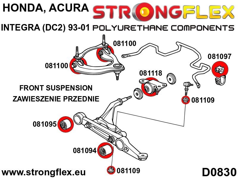 KIT DE CASQUILLO DE SUSPENSIÓN DELANTERA STRONGFLEX Fabricante: Honda Modelo-Año: Integra - Dc2 Type R 97-01 El tiempo de entrega del articulo puede ser de 7-15 dias dependiendo de la disponibilidad. Descripcion: Características principales de los productos: