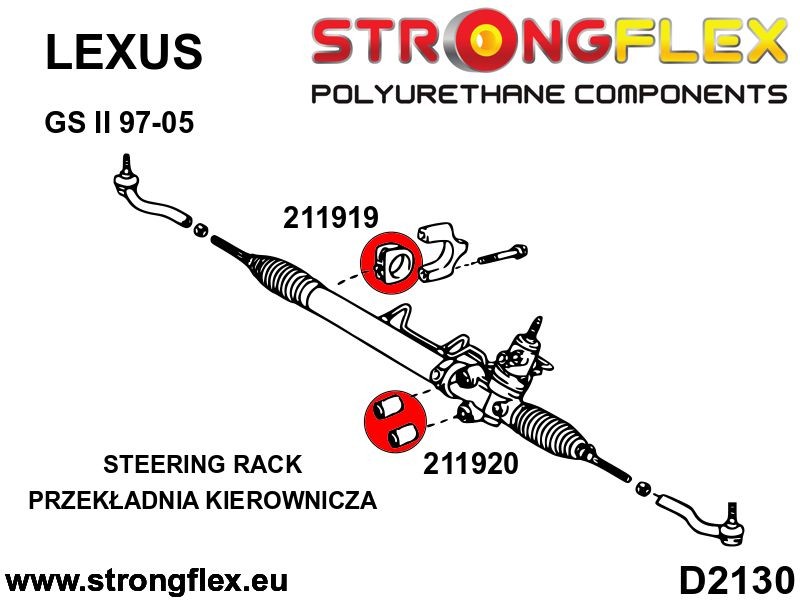 Nuestros productos de la serie strongflex están fabricados con poliuretano, mejor que las piezas de goma tradicionales. El poliuretano tiene las ventajas añadidas de una mayor seguridad, mejor durabilidad y sostenibilidad de la suspensión, y muchos más kilómetros (millas) recorridos sin reparaciones.