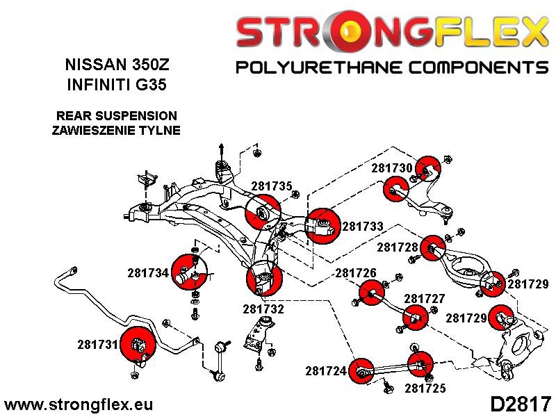 Color ROJO Version normal - dureza de unos 80 ShA* - los componentes de la suspensión tienen una dureza similar a la de los casquillos originales de metal-caucho. Sin embargo, la resistencia del poliuretano es muchas veces mayor, y sus propiedades únicas garantizan un confort duradero. Nuestros productos de color ROJO los recomendamos para todos los usuarios de coches "normales" que quieren mejorar la estabilidad y una mejor conducción.