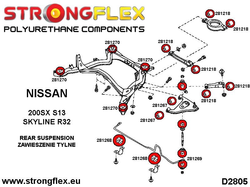 Nuestros productos de la serie strongflex están fabricados con poliuretano, mejor que las piezas de goma tradicionales. El poliuretano tiene las ventajas añadidas de una mayor seguridad, mejor durabilidad y sostenibilidad de la suspensión, y muchos más kilómetros (millas) recorridos sin reparaciones.