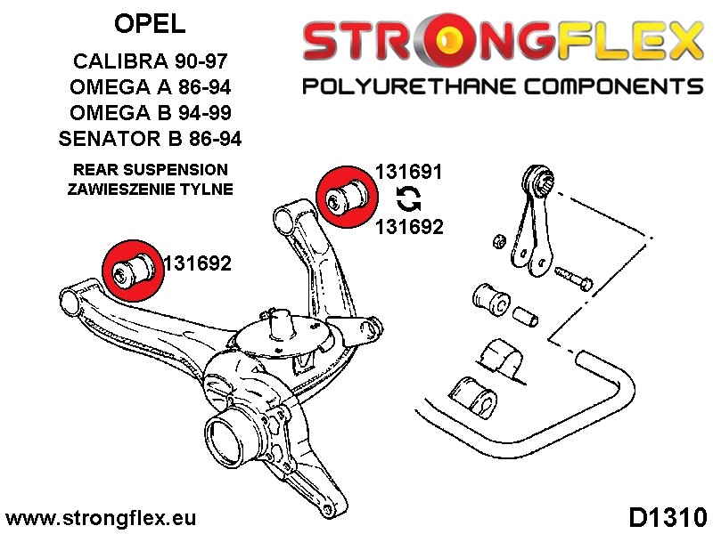 Color ROJO Version normal - dureza de unos 80 ShA* - los componentes de la suspensión tienen una dureza similar a la de los casquillos originales de metal-caucho. Sin embargo, la resistencia del poliuretano es muchas veces mayor, y sus propiedades únicas garantizan un confort duradero. Nuestros productos de color ROJO los recomendamos para todos los usuarios de coches "normales" que quieren mejorar la estabilidad y una mejor conducción.