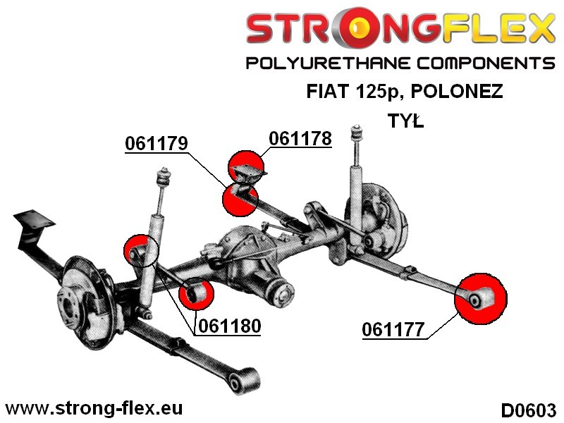Nuestros productos de la serie strongflex están fabricados con poliuretano, mejor que las piezas de goma tradicionales. El poliuretano tiene las ventajas añadidas de una mayor seguridad, mejor durabilidad y sostenibilidad de la suspensión, y muchos más kilómetros (millas) recorridos sin reparaciones.