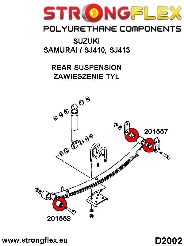 Nuestros productos de la serie strongflex están fabricados con poliuretano, mejor que las piezas de goma tradicionales. El poliuretano tiene las ventajas añadidas de una mayor seguridad, mejor durabilidad y sostenibilidad de la suspensión, y muchos más kilómetros (millas) recorridos sin reparaciones.