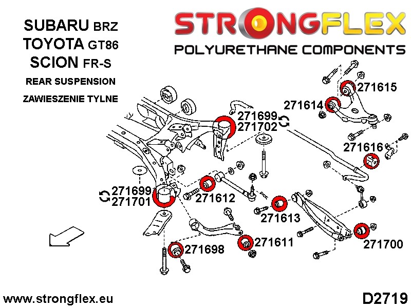KIT DE BUJE DELANTERO DE BRAZO DE ARRASTRE TRASERO STRONGFLEX SPORT 2 Piezas Fabricante: Toyota Modelo-Año: Gt86 - Todos/All El tiempo de entrega del articulo puede ser de 7-15 dias dependiendo de la disponibilidad. Descripcion: Características principales de los productos: