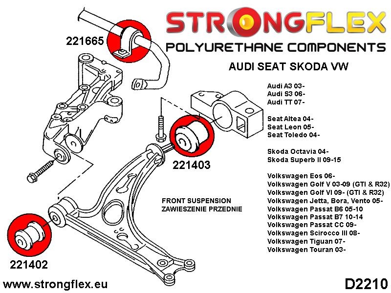 KIT DE CASQUILLOS DE SUSPENSIÓN STRONGFLEX FULL Fabricante: Volkswagen Modelo-Año: Vento 05- - Todos/All El tiempo de entrega del articulo puede ser de 7-15 dias dependiendo de la disponibilidad. Descripcion: Características principales de los productos: