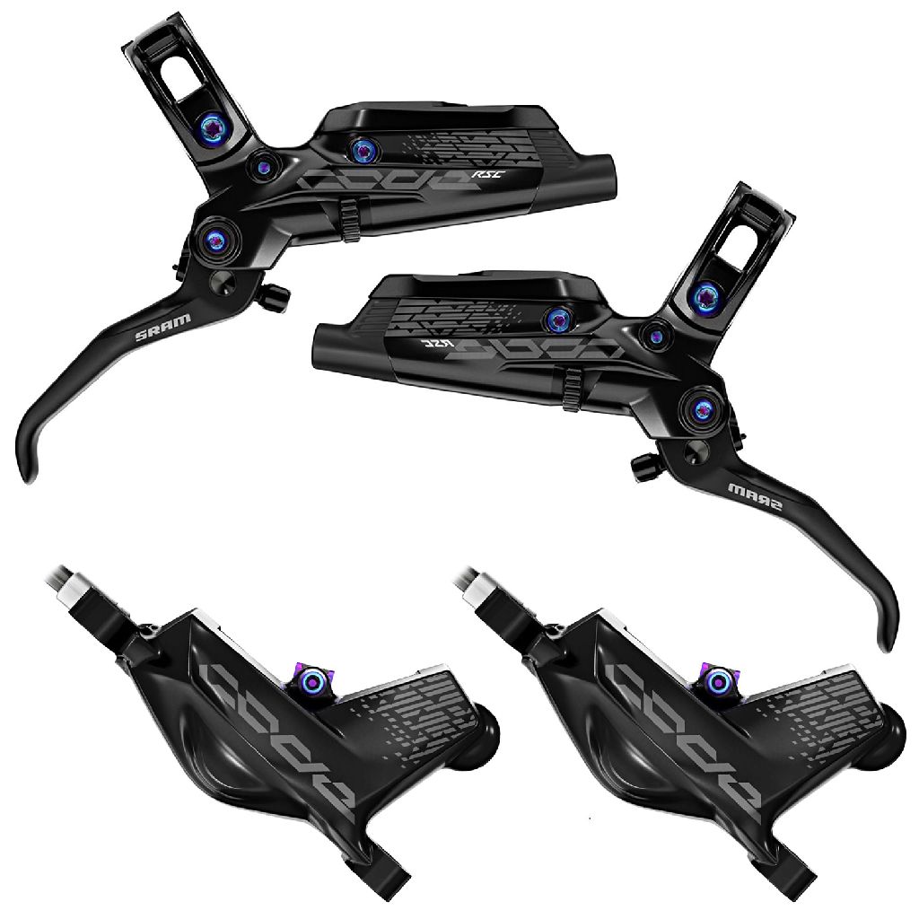 SRAM, Set of disc brakes, Code RSC Rainbow, FRONT&REAR, glossy black, 950mm/2000mm brake hose, without rotor and adapter, OEM
