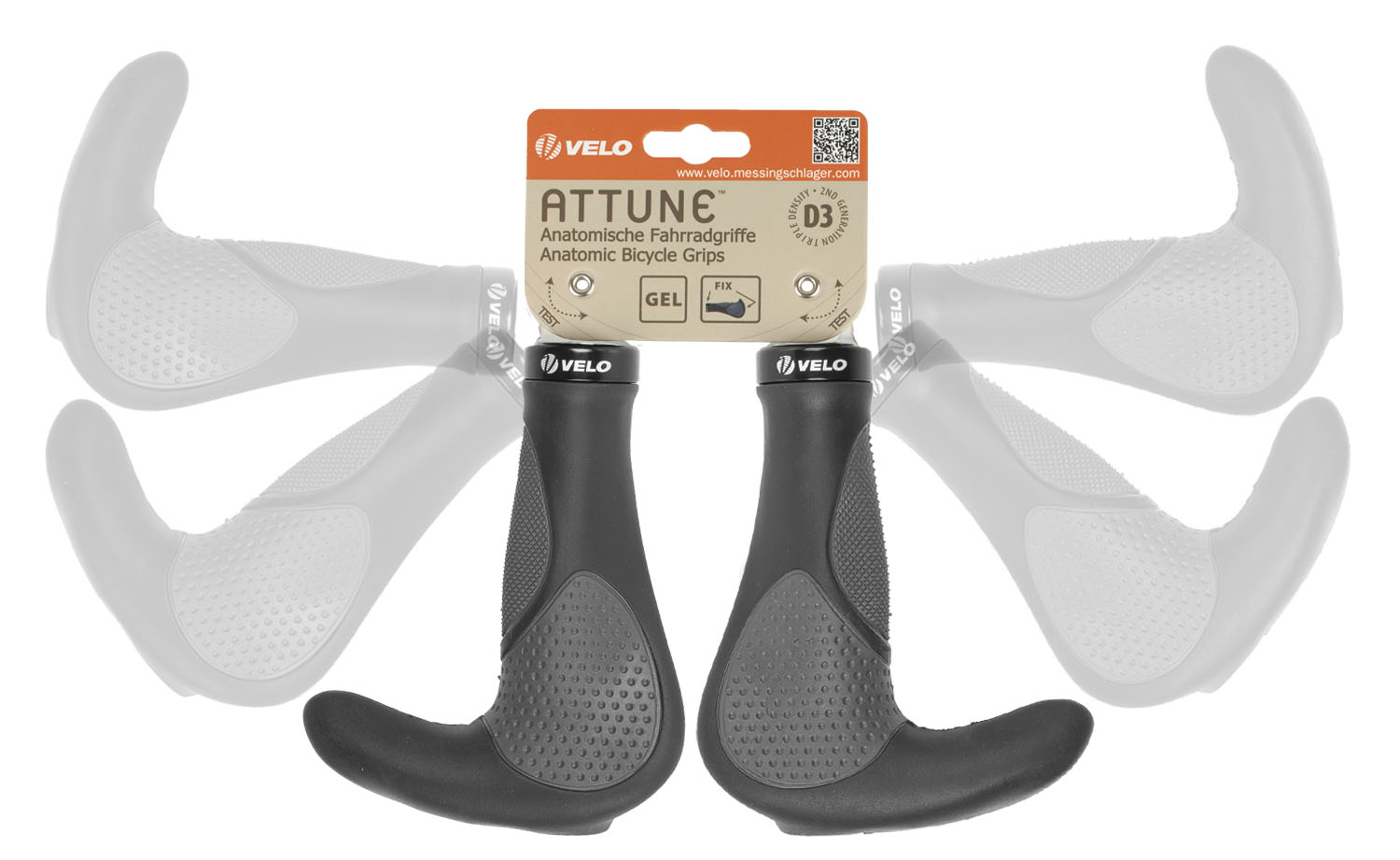 Velo, Grips, comfort grip (screwed) VELO - D3, with integrated extra handlebar grip, with gel, ergonomic shape, on card