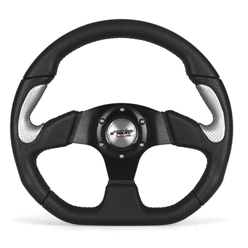 VOLANTE X2 330 POLIURETANO-PIEL INOX-BRA. NEG