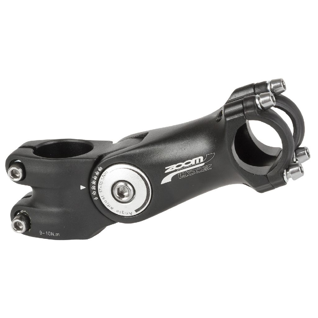 ZOOM, AHEAD-Stem, adjustable, aluminium, 0° up to 60°, 25,4mm clamping, 1.1/8", black with black clamping, about 267g